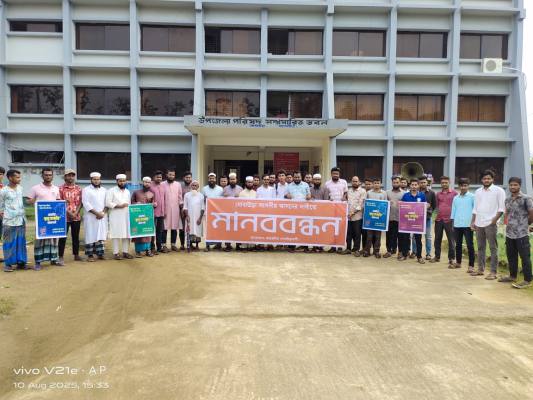 ময়মনসিংহের ধোবাউড়া উপজেলাকে একক সংসদীয় আসন ঘোষণার দাবিতে মানববন্ধন অনুষ্ঠিত হয়েছে। রবিবার (১০ আগস্ট) বিকেলে উপজেলা পরিষদ চত্বরে আয়োজিত এই কর্মসূচিতে শিক্ষক, ছাত্র, কৃষক, সমাজকর্মীসহ নানা শ্রেণি-পেশার মানুষ অংশ নেন।