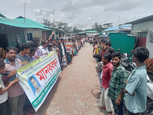 নোয়াখালীতে ব্যবসায়ীকে মিথ্যা মামলায় ফাঁসানোর প্রতিবাদে মানববন্ধন ও বিক্ষোভ