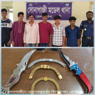 ফেনীর সোনাগাজীতে ছয় কিশোর গ্যাং সদস্যকে গ্রেফতার করেছে পুলিশ। গত ১০ আগস্ট (রোববার) সন্ধ্যা ৭টার দিকে আমিরাবাদ ইউনিয়নের সোনাপুর বাজার এলাকা থেকে তাদের আটক করা হয়।