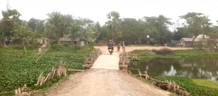 সরেজমিনে দেখা গেছে, সেতুর প্রায় ৮০ শতাংশ কাজ সম্পন্ন হলেও ঠিকাদারী প্রতিষ্ঠানের কোনো কার্যক্রম নেই। বিকল্প হিসেবে কাঠের তৈরি সেতু দিয়ে ছোট যানবাহন ও মানুষ ঝুঁকি নিয়ে চলাচল করছেন, যা যেকোনো সময় ভেঙে দুর্ঘটনা ঘটার আশঙ্কা রয়েছে।