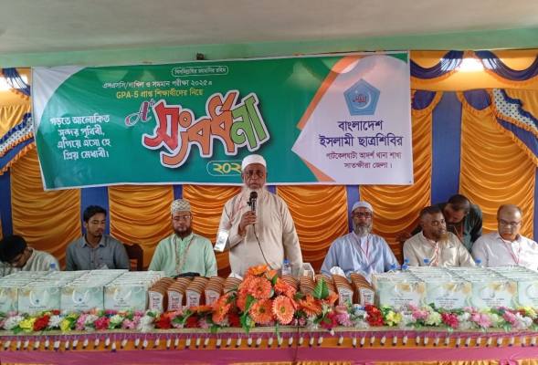 সাতক্ষীরার তালা উপজেলার পাটকেলঘাটায় এসএসসি, দাখিল ও সমমান পরীক্ষায় জিপিএ-৫ অর্জনকারী ১০০ জন শিক্ষার্থীকে সংবর্ধনা দিয়েছে বাংলাদেশ ইসলামী ছাত্রশিবির। শুক্রবার (১৫ আগস্ট) সকাল ৯টায় পাটকেলঘাটা আদর্শ উচ্চ বিদ্যালয়ের হলরুমে পাটকেলঘাটা শাখার উদ্যোগে এ সংবর্ধনা অনুষ্ঠিত হয়।