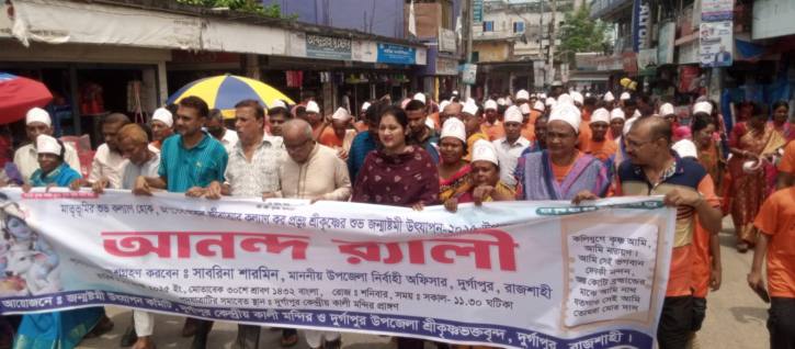 রাজশাহীর দুর্গাপুরে উৎসবমুখর পরিবেশে শ্রীকৃষ্ণের জন্মাষ্টমী উদযাপিত হয়েছে। উপজেলা জন্মাষ্টমী উদযাপন কমিটির আয়োজনে ও দুর্গাপুর কেন্দ্রীয় কালীমন্দির পরিচালনা কমিটির সহযোগিতায় শনিবার (১৬ আগস্ট) দিনব্যাপী এ অনুষ্ঠান পালিত হয়।