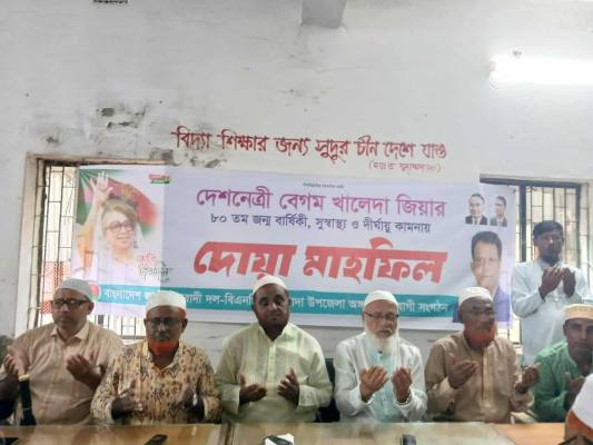শনিবার (১৬ আগস্ট) উপজেলা প্রাথমিক শিক্ষক সমিতির মিলনায়তনে উপজেলা বিএনপি ও অঙ্গ-সহযোগী সংগঠনের উদ্যোগে এই দোয়া মাহফিল অনুষ্ঠিত হয়। দেশনেত্রী বেগম খালেদা জিয়ার সুস্বাস্থ্য ও দীর্ঘায়ু কামনা করে এই অনুষ্ঠানের আয়োজন করা হয়।