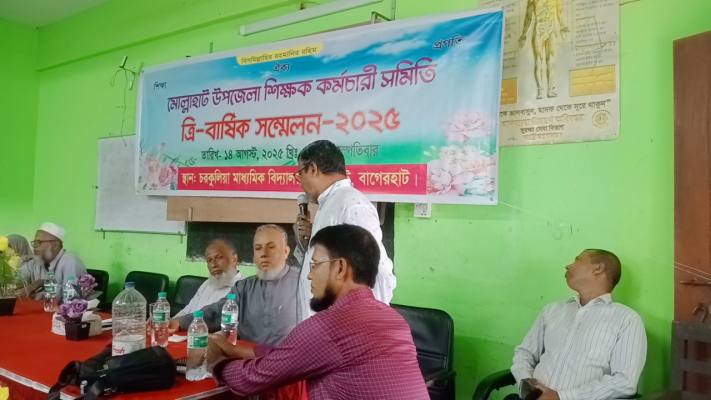 বাগেরহাটের মোল্লাহাট উপজেলা শিক্ষক-কর্মচারী সমিতির ত্রি-বার্ষিক সম্মেলন অনুষ্ঠিত হয়েছে। শুক্রবার দুটি অধিবেশনে এই সম্মেলন সম্পন্ন হয়।