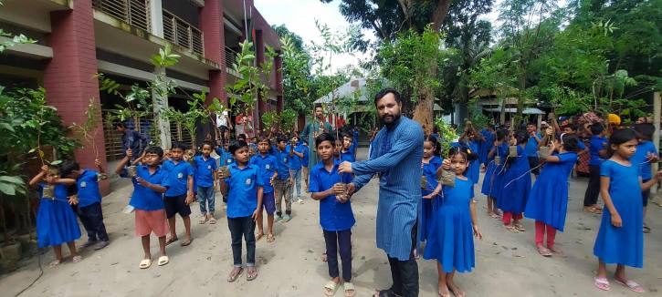 রবিবার (১৭ আগস্ট) দুপুরে হরিরামপুর উপজেলার দিয়াপাড় পলাশ স্মৃতি সরকারি প্রাথমিক বিদ্যালয়ে যুবদল নেতা শাকিল মোল্লার ব্যক্তিগত উদ্যোগে এই আয়োজন করা হয়। এ সময় স্কুলের শিক্ষার্থীদের মাঝে ৩০০-র বেশি বিভিন্ন প্রজাতির ফলজ ও ভেষজ গাছের চারা বিতরণ করা হয়।