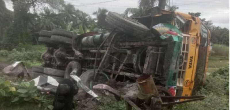 প্রত্যক্ষদর্শী ও পুলিশ সূত্রে জানা গেছে, মোংলা থেকে খুলনাগামী ফাইভ রিংস সিমেন্টবোঝাই ট্রাকটি (নম্বর সংগ্রহযোগ্য) আফিল গেট রেল ক্রসিং অতিক্রম করার সময় চালক নিয়ন্ত্রণ হারিয়ে ফেলেন। এতে ট্রাকটি সড়কের বাঁ পাশে থাকা একটি গভীর খাদে পড়ে যায়।