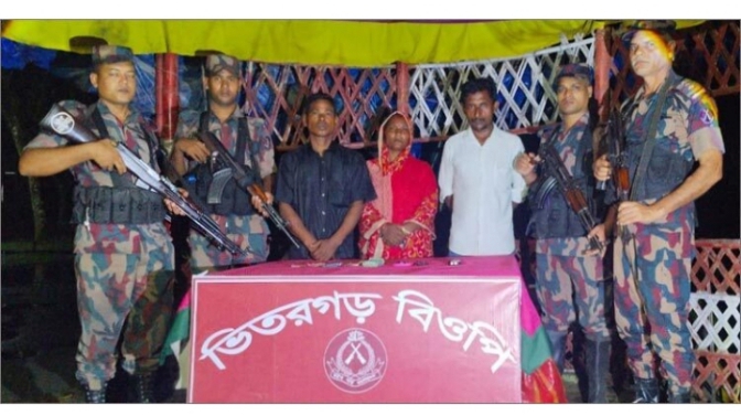 পঞ্চগড় সদর উপজেলার ভিতরগড় সীমান্ত দিয়ে অবৈধভাবে ভারতে প্রবেশের চেষ্টাকালে তিন বাংলাদেশি নাগরিককে আটক করেছে বর্ডার গার্ড বাংলাদেশ (বিজিবি)। মঙ্গলবার (১৯ আগস্ট) গভীর রাতে নীলফামারী ৫৬ বিজিবি ব্যাটালিয়নের আওতাধীন সীমান্ত এলাকা থেকে তাদের আটক করা হয়।
