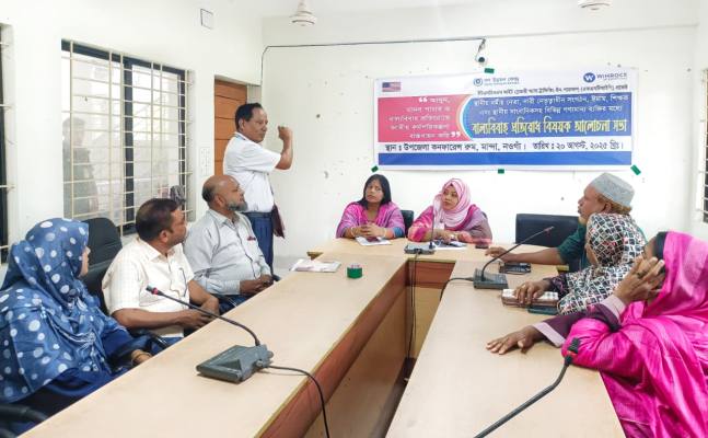 নওগাঁর মান্দায় মানব পাচার ও বাল্যবিয়ে প্রতিরোধে এক মতবিনিময় সভা অনুষ্ঠিত হয়েছে। বুধবার (২০ আগস্ট) সকালে উপজেলা নির্বাহী কর্মকর্তার (ইউএনও) সম্মেলন কক্ষে এ সভার আয়োজন করে বেসরকারি উন্নয়ন সংস্থা গণ উন্নয়ন কেন্দ্র (GUK)। এটি ইউএসডিওএস-এর “ফাইট স্লেভারি অ্যান্ড ট্রাফিকিং-ইন-পারসনস (এফএসটিআইপি)” প্রকল্পের আওতায় অনুষ্ঠিত হয়।