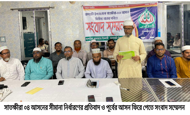 বাংলাদেশ নির্বাচন কমিশন কর্তৃক সদ্য জারিকৃত সীমানা পুনর্নির্ধারণ বিজ্ঞপ্তির (৩০ জুলাই ২০২৫) প্রতিবাদে এবং আশাশুনিকে পূর্বের সাতক্ষীরা-০৩ আসনে পুনঃস্থাপনের দাবিতে আশাশুনিতে এক সংবাদ সম্মেলন অনুষ্ঠিত হয়েছে। শনিবার দুপুর ১২টায় আশাশুনি উপজেলা জামায়াতের আয়োজনে প্রেস ক্লাবে এ সম্মেলন অনুষ্ঠিত হয়।