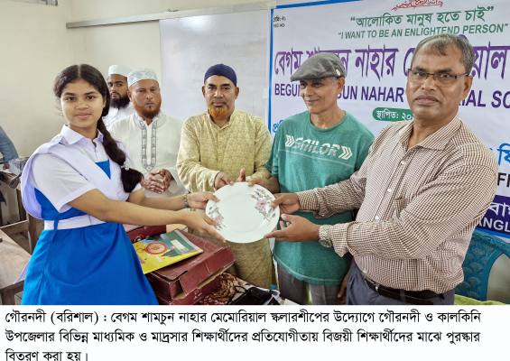 বরিশালের গৌরনদীতে বেগম শামচুন নাহার মেমোরিয়াল স্কলারশীপের উদ্যোগে গৌরনদী ও কালকিনি উপজেলার ৬টি মাধ্যমিক ও মাদ্রসার শিক্ষার্থীদের ইসলামিক সাংস্কৃতিক প্রতিযোগীতা অনুষ্ঠিত হয়েছে।