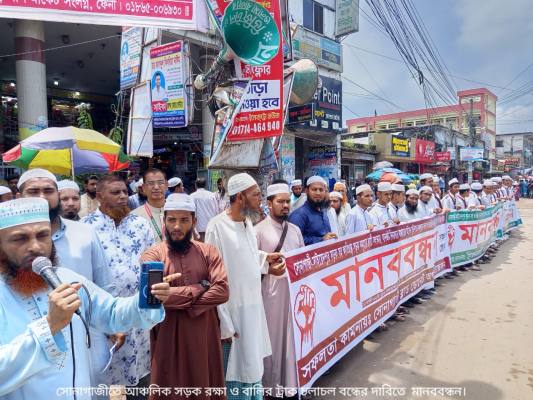 সোনাগাজীতে সড়ক রক্ষায় মানববন্ধন ও স্মারকলিপি প্রদান