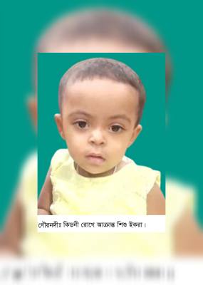 মাত্র ১৫ মাস বয়সের ফুঁটফুঁটে শিশু কন্যা ইকরা জন্ম থেকে কিডনী রোগে আক্রান্ত। ইতোমধ্যে তার বাবা ধারদেনাসহ বিভিন্ন এনজিও থেকে ঋণ উত্তোলন করে একমাত্র মেয়ের চিকিৎসা করাতে গিয়ে নিঃস্ব হয়ে পরেছেন।