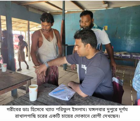 ২৬ অক্টোবর মঙ্গলবার সরেজমিন তার সঙ্গে েকটি নৌভ্রমণে গিয়ে তার চিকিৎসা সেবা দেয়ার তেমন নমুনা দেখতে পাওয়া গেল।