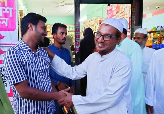 গণসংযোগকালে তিনি স্থানীয় ব্যবসায়ী, বাজারের ক্রেতা-বিক্রেতাসহ সর্বস্তরের জনগণের সঙ্গে কুশল বিনিময় করেন এবং হাতপাখা প্রতীকে ভোট ও দোয়া প্রার্থনা করেন।