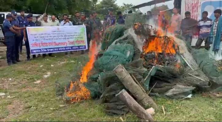 পরে জালগুলো দৌলতদিয়ার ৬ নম্বর ফেরিঘাটে এনে আগুনে পুড়িয়ে ধ্বংস করা হয়।