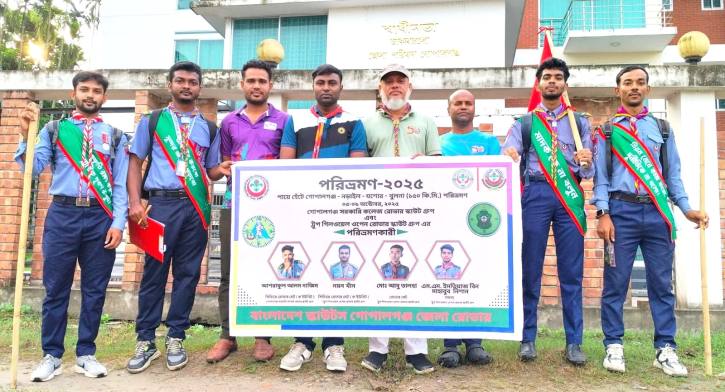 গোপালগঞ্জ সদর উপজেলার গেট থেকে সকালে নড়াইল- যশোর হয়ে খুলনার উদ্দেশ্য পায়ে হেঁটে রওনা দিয়েছেন রোভার স্কাউটসের চার সদস্য রোভার আশরাফুল আলম নাজিম,নয়ন খান, রোভার মো.আবু তালহা, রোভার এস.এম.ইমতিয়াজ বিন মাহবুব নিশান।খুলনা পৌঁছাতে তাদের পাড়ি দিতে হবে ১৫০ কিলোমিটার সড়ক পথ।