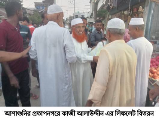 জাতীয় সংসদের সাবেক এমপি ও বিএনপি জাতীয় নির্বাহী কমিটির সদস্য, সাতক্ষীরা-৩ আসনের বিএনপির মনোনয়নপ্রত্যাশী কাজী আলাউদ্দীন নিজ হাতে ব্যবসায়ী, ক্রেতা ও পথচারীদের মধ্যে লিফলেট বিতরণ করেন এবং তারেক রহমানের পক্ষ থেকে শুভেচ্ছা বিনিময় করেন।