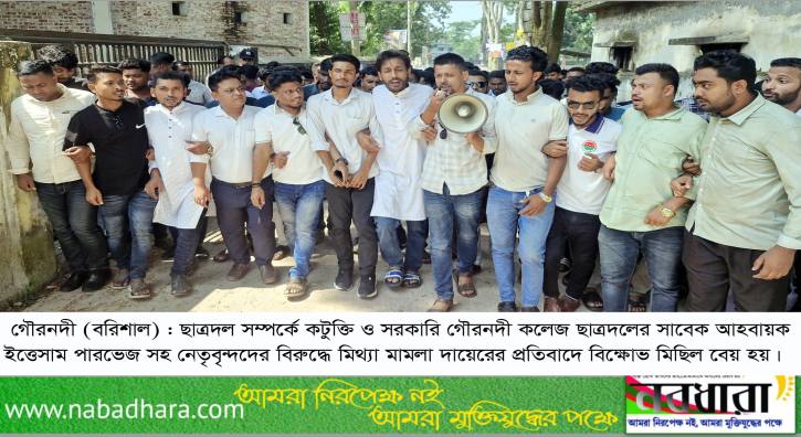 বরিশালের গৌরনদীতে ছাত্রদল সম্পর্কে কটুক্তি ও সরকারি গৌরনদী কলেজ ছাত্রদলের সাবেক আহবায়ক ইত্তেসাম পারভেজ সহ নেতৃবৃন্দদের বিরুদ্ধে মিথ্যা মামলা দায়েরের প্রতিবাদে এবং অবিলম্বে মামলা প্রত্যাহারের দাবীতে বিক্ষোভ মিছিল ও প্রতিবাদ সভা অনুষ্ঠিত হয়েছে।