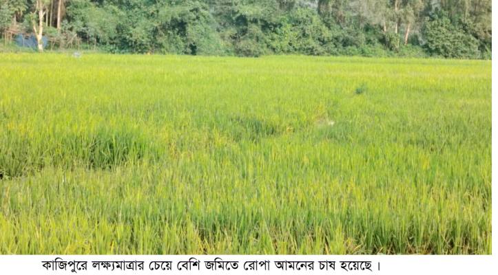 কাজিপুরে লক্ষ্যমাত্রার চেয়ে বেশি জমিতে রোপা আমন ধান চাষ, শুরু হয়েছে কাটা ও মাড়াই