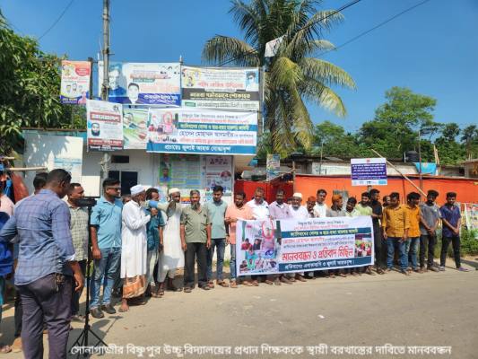 সোনাগাজীতে প্রধান শিক্ষককে স্থায়ী বরখাস্তের দাবিতে মানববন্ধন