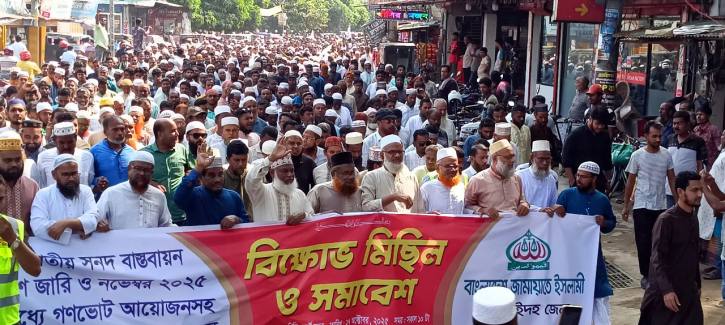 জুলাই জাতীয় সনদ বাস্তবায়নের আদেশ জারি ও নভেম্বরে গণভোট আয়োজনসহ ৫ দফা দাবিতে ঝিনাইদহে বিক্ষোভ মিছিল ও সমাবেশ করেছে জামায়াত। কেন্দ্রীয় কর্মসূচীর অংশ হিসেবে জেলা শাখার আয়োজনে সোমবার (২৭ অক্টোবর) সকালে শহরের পুরাতন ডিসি কোর্ট চত্বর থেকে একটি বিক্ষোভ মিছিল বের করা হয়। মিছিলটি শহরের বিভিন্ন সড়ক ঘুরে পায়রা চত্বরে গিয়ে শেষ হয়। পরে সেখানে সমাবেশ অনুষ্ঠিত হয়।