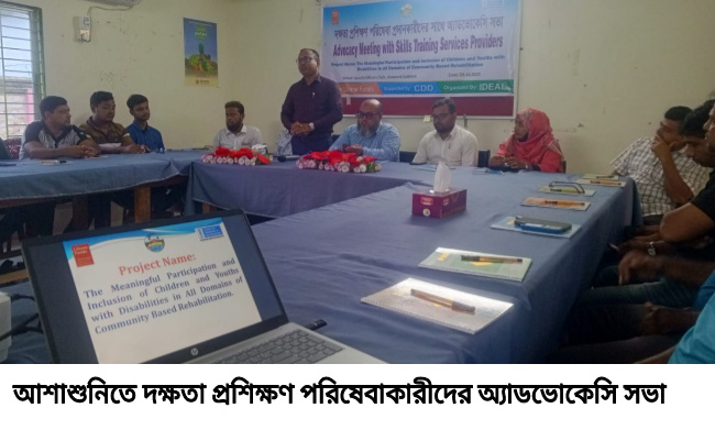 লিলিয়েনা ফন্ডসের অর্থায়নে এবং সিডিডি’র সহযোগিতায় আইডিয়াল বাস্তবায়িত “দ্যা মিনিংফুল অ্যান্ড ইনক্লুশন অফ চিলড্রেন অ্যান্ড ইউথ উইথ ডিসঅ্যাবিলিটি ইন অল ডোমেইনস অফ কমিউনিটি বেইসড রিহ্যাবিলিটেশন” প্রকল্পের আওতায় এই সভা অনুষ্ঠিত হয়।
