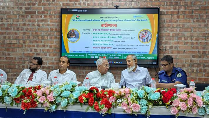 কর্মশালায় প্রধান অতিথি হিসেবে বক্তব্য রাখেন নির্বাচন কমিশনার মো. আনোয়ারুল ইসলাম সরকার।