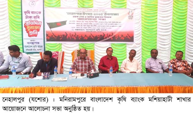 “এসো দেশ বদলাই, পৃথিবী বদলাই” শ্লোগানকে সামনে রেখে মনিরামপুরের মশিয়াহাটীতে বাংলাদেশ কৃষি ব্যাংক মশিয়াহাটী শাখার আয়োজনে আলোচনা সভা অনুষ্ঠিত হয়েছে। সভাটি তারুণ্যের উৎসব-২০২৫ উপলক্ষে গ্রাহক সেবা ও আর্থিক সাক্ষরতা বিষয়ক কার্যক্রমের অংশ হিসেবে আয়োজন করা হয়।
