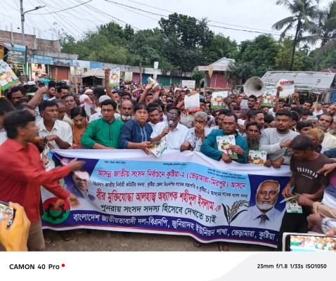 বিএনপির জাতীয় নির্বাহী কমিটির সদস্য, জেলা বিএনপির সাবেক সভাপতি ও কুষ্টিয়া-২ (ভেড়ামারা-মিরপুর) আসনের সাবেক সংসদ সদস্য আলহাজ্ব অধ্যাপক শহীদুল ইসলামের পক্ষে ভেড়ামারা উপজেলার জুনিয়াদহ ইউনিয়ন বিএনপি ও অঙ্গসংগঠনের উদ্যোগে রবিবার বিকেলে জুনিয়াদহ বাজারে গণমিছিল ও সমাবেশ অনুষ্ঠিত হয়েছে।