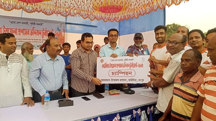 রংপুরের কাউনিয়ায় উৎসবমুখর পরিবেশে অনুষ্ঠিত হলো উপজেলা প্রশাসন আয়োজিত ভলিবল টুর্নামেন্টের ফাইনাল ও পুরস্কার বিতরণ অনুষ্ঠান। শনিবার (৮ নভেম্বর) বিকেলে অনুষ্ঠিত ফাইনাল খেলায় বালাপাড়া ইউনিয়নকে ৩-১ সেটের ব্যবধানে হারিয়ে চ্যাম্পিয়ন হওয়ার গৌরব অর্জন করে স্বাগতিক হারাগাছ পৌরসভা দল।