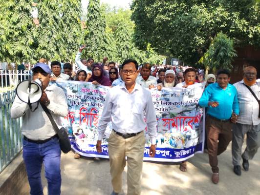 বিক্ষোভ সমাবেশ শেষে শিক্ষকদের একটি বিক্ষোভ মিছিল উপজেলা পরিষদ চত্বর প্রদক্ষিণ করে শেষ হয়।