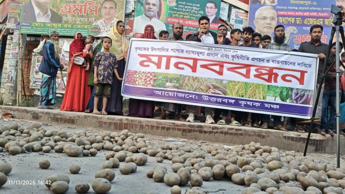 মঙ্গলবার (১১ নভেম্বর) বিকেল সাড়ে ৪টার দিকে দিনাজপুর–গোবিন্দগঞ্জ মহাসড়কের বিরামপুর ঢাকা মোড়ে উত্তরবঙ্গ কৃষক মঞ্চের আয়োজনে এই মানববন্ধন অনুষ্ঠিত হয়। এতে স্থানীয় কৃষক, কৃষাণি, কৃষিশ্রমিক, শিক্ষার্থী ও বিভিন্ন শ্রেণি–পেশার মানুষ অংশ নেন।