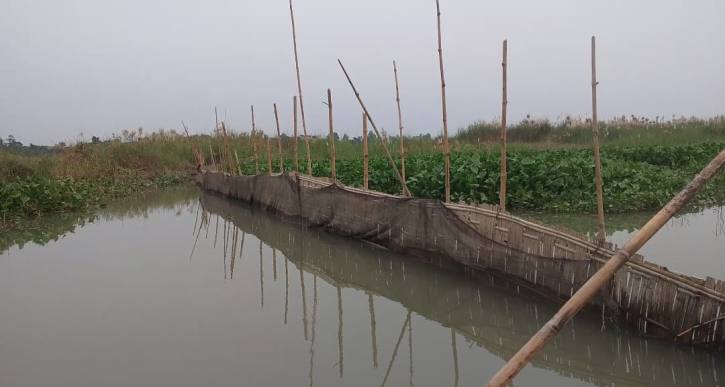 বুধবার (১২ নভেম্বর) সরেজমিনে গিয়ে দেখা যায়, স্থানীয় রোমান নামে এক ব্যক্তি খালের ওপর বাঁধ তৈরি করে মাছ ধরার উদ্দেশ্যে নৌপথ বন্ধ করে দিয়েছেন। ফলে দীর্ঘদিন ধরে কৃষিপণ্য পরিবহন ও জেলেদের জীবিকার অন্যতম মাধ্যম হিসেবে ব্যবহৃত এ খালটি এখন অচল হয়ে পড়েছে।