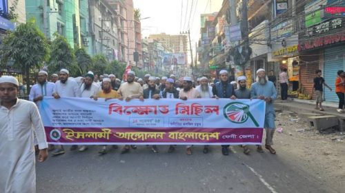 মিছিলটি গেটপাড়া থেকে শুরু হয়ে কবরস্থান মোড়, সদর থানা এলাকা ও চৌরঙ্গী মোড় ঘুরে পুরাতন লঞ্চঘাট এলাকায় গিয়ে শেষ হয়। পরে সেখানে জেলা জামায়াতের আমির অধ্যাপক রেজাউল করিমের সভাপতিত্বে বিক্ষোভ সমাবেশ অনুষ্ঠিত হয়।