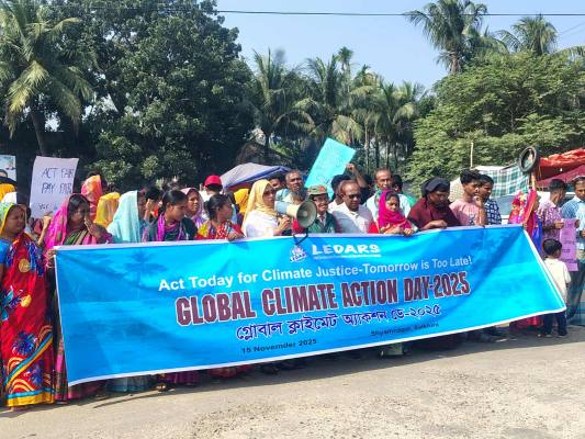 কপ ৩০–এ জলবায়ুর ন্যায়বিচার নিশ্চিতের দাবিতে সাতক্ষীরার শ্যামনগরে গ্লোবাল অ্যাকশন ডে-২০২৫ পালন হয়েছে।