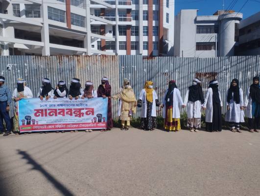 মানববন্ধন থেকে জাতীয় স্বাস্থ্যব্যবস্থা সচল রাখতে দ্রুত ন্যায্য দাবি বাস্তবায়নের জন্য সরকারের প্রতি জোর আহ্বান জানানো হয়।