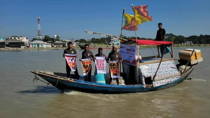 পরিবেশবাদী সংগঠন ধরিত্রী, ওয়াটার কিপার্স বাংলাদেশ ও স্বেচ্ছাসেবী সংগঠন আমরা কলাপাড়াবাসীর যৌথ উদ্যোগে আয়োজিত নৌবহরে অংশগ্রহণকারীরা নৌকা র‌্যালি, স্লোগান, ব্যানার ও প্লাকার্ড প্রদর্শন করে গ্যাস সম্প্রসারণের বিরুদ্ধে প্রতিবাদ জানায়।