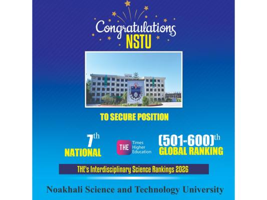 আন্তর্জাতিক অঙ্গনে এক নতুন সাফল্যের স্বীকৃতি পেয়েছে নোয়াখালী বিজ্ঞান ও প্রযুক্তি বিশ্ববিদ্যালয় (নোবিপ্রবি)। যুক্তরাজ্যভিত্তিক উচ্চশিক্ষা বিষয়ক স্বনামধন্য সাময়িকী টাইমস হায়ার এডুকেশন (টিএইচই) প্রকাশিত ২০২৬ সালের ইন্টারডিসিপ্লিনারি সায়েন্স র্যাঙ্কিংয়ে নোবিপ্রবি বিশ্বব্যাপী ৫০১–৬০০ অবস্থান এবং বাংলাদেশে ৭ম স্থান অর্জন করেছে। বৃহস্পতিবার (২০ নভেম্বর ২০২৫) টিএইচই তাদের ওয়েবসাইটে এ র্যাঙ্কিং প্রকাশ করে।