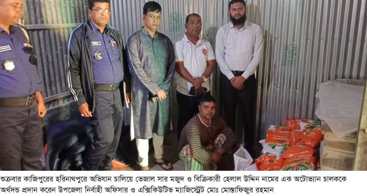জানা যায়, গোপন সংবাদের ভিত্তিতে কাজিপুর উপজেলা নির্বাহী অফিসার ও এক্সিকিউটিভ ম্যাজিস্ট্রেট মোঃ মোস্তাফিজুর রহমান হরিনাথপুর বাজার এলাকায় ভেজাল সার বিক্রির বিরুদ্ধে অভিযান পরিচালনা করেন। এসময় কাজিপুর থানার উপ-পরিদর্শক সাইফুল ইসলাম, সেকেন্ড অফিসার আবু সাইদ ও সঙ্গীয় ফোর্সসহ হেলাল উদ্দিনকে ভেজাল সার বিক্রির সময় হাতে-নাতে আটক করেন। পরে তার বসতবাড়িতে অভিযান চালিয়ে একশ বস্তা ভেজাল সার উদ্ধার করা হয়।