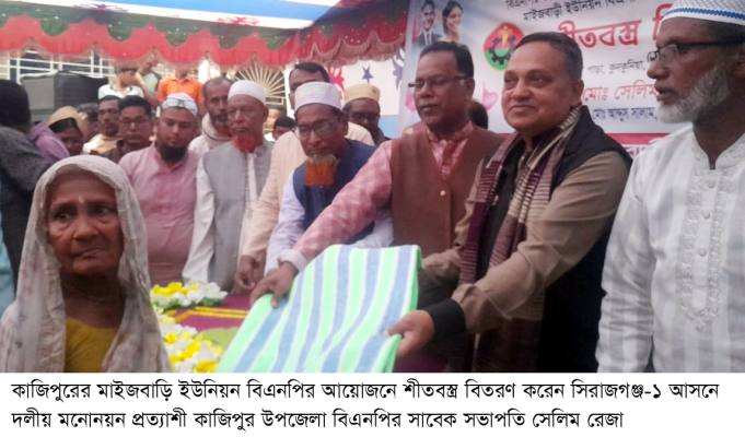 বিএনপির সিনিয়র ভাইস প্রেসিডেন্ট তারেক রহমানের জন্মদিন উপলক্ষে কাজিপুর উপজেলা বিএনপি শুক্রবার দুঃস্থ ও অসহায়দের মাঝে ৫০০টি শীতবস্ত্র বিতরণ করেছে। এই বিতরণ কার্যক্রম অনুষ্ঠিত হয় উপজেলার মাইজবাড়ী ইউনিয়নের কুনকুনিয়া সর্দার পাড়া এলাকায়।