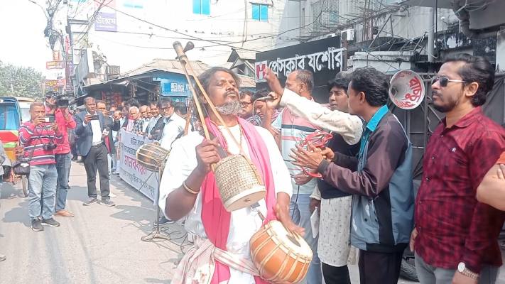 বাউল শিল্পী আবুল সরকারের দ্রুত ও নিঃশর্ত মুক্তির দাবিতে যশোর প্রেসক্লাবের সামনে শনিবার সকালে এক মানববন্ধন কর্মসূচি পালিত হয়েছে। যশোরের বিভিন্ন সাংস্কৃতিক সংগঠনের উদ্যোগে অ্যাডভোকেট সানোয়ারুল হক দুলু’র নেতৃত্বে এই মানববন্ধন অনুষ্ঠিত হয়। এতে প্রায় ৩৫ থেকে ৪০ জন সাংস্কৃতিক কর্মী ও বাউল অনুরাগী অংশ নেন।