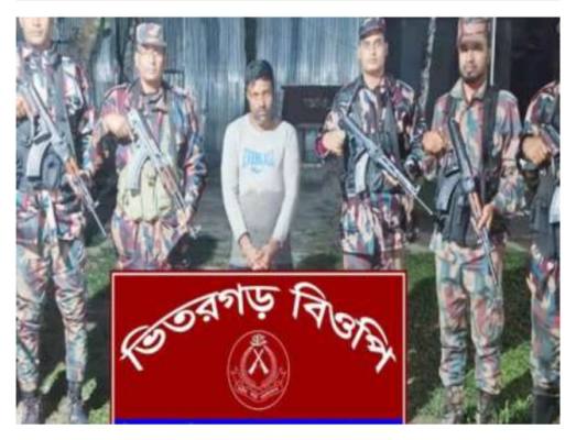 ‎গতকাল গভীর রাতে ভিতরগড় বিওপির আবালুপাড়া সীমান্ত থেকে তাকে আটক করা হয়৷ আটককৃত ব্যক্তির নাম বুলু (৩৫) । সে অমরখানা ইউনিয়নের পকলাভিটা গ্রামের সিরাজুলের ছেলে।