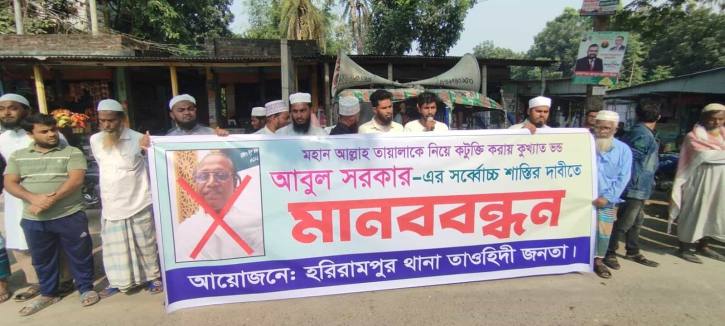 ‎মানিকগঞ্জের হরিরামপুরে বিতর্কিত বাউল শিল্পী আবুল সরকারের ফাঁসির দাবিতে মানববন্ধন ও বিক্ষোভ মিছিল অনুষ্ঠিত হয়েছে।
