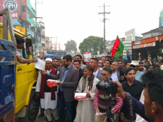 লিফলেট বিতরণ শেষে ঢাকা মহানগর উত্তর যুবদলের আহবায়ক শরীফ উদ্দিন জুয়েল আল্লারদর্গা বাজার সহ পাশর্^বতী বিভিন্ন এলাকায় গণসংযোগ করেন।