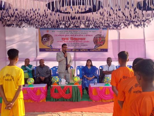 নরসিংদীতে ডেভেলপমেন্ট ফুটবল বাছাই প্রতিযোগিতা ও প্রশিক্ষণ কর্মসূচির উদ্বোধন
