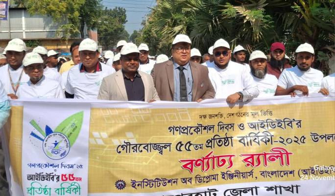 বাগেরহাটে গণপ্রকৌশল দিবস ও ইনস্টিটিউশন অব ডিপ্লোমা ইঞ্জিনিয়ার্স, বাংলাদেশ (আইডিইবি)–এর গৌরবোজ্জ্বল ৫৫তম প্রতিষ্ঠাবার্ষিকী পালিত হয়েছে। সোমবার (২৪ নভেম্বর) দুপুরে এ উপলক্ষে একটি বর্ণাঢ্য র‍্যালি বের করা হয়।