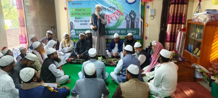 সভায় সভাপতিত্ব করেন বাংলাদেশ খেলাফত মজলিসের আলফাডাঙ্গা উপজেলা সভাপতি মাওলানা ইলিয়াস হোসাইন। প্রধান অতিথি হিসেবে মুফতি শরাফাত হোসাইন আরও বলেন, “একজন সৎ, দায়িত্ববান ও আদর্শবান কর্মী সমগ্র সমাজকে বদলে দিতে পারে। যুবসমাজকে বিভক্তি, বিশৃঙ্খলা ও অপসংস্কৃতি থেকে দূরে রেখে দেশ ও ধর্মের কল্যাণে কাজ করতে হবে।”