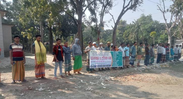 শনিবার (২৯ নভেম্বর) বেলা ১১ টায় মাদ্রাসার সামনে এ মানববন্ধন অনুষ্ঠিত হয়।