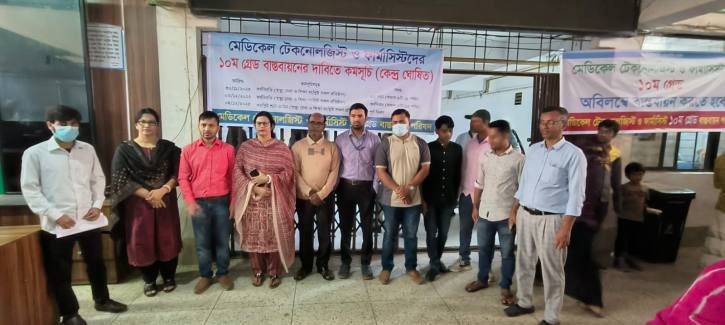 মেডিকেল টেকনোলজিস্ট ও ফার্মাসিস্টদের ১০ম গ্রেড বাস্তবায়নের দাবিতে গোপালগঞ্জে কর্মবিরতি