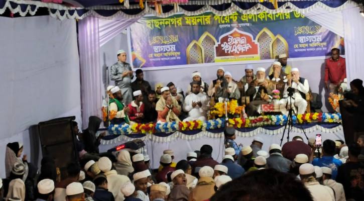 রবিবার (৩০ নভেম্বর) রাত ৯ টায় মাহফিল প্রাঙ্গণে তিনি এই দোয়া প্রার্থনা করেন।এ সময় আল্লামা নুরুল ইসলাম খান সাহেব সহ স্থানীয় ওলামায়ে কেরাম উপস্থিত ছিলেন।